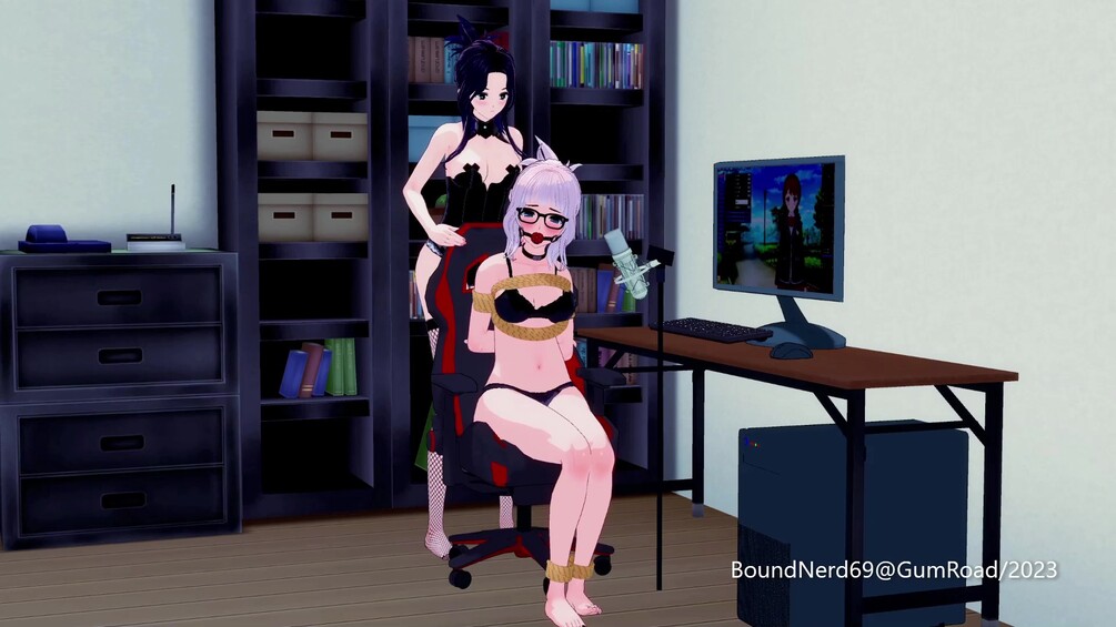 2 videos & 2 scenes (to use in charastudios) Yuk VA is bound and gagged by Cat, later she struggles while being vibed from an intruder (first person POV from intruder)